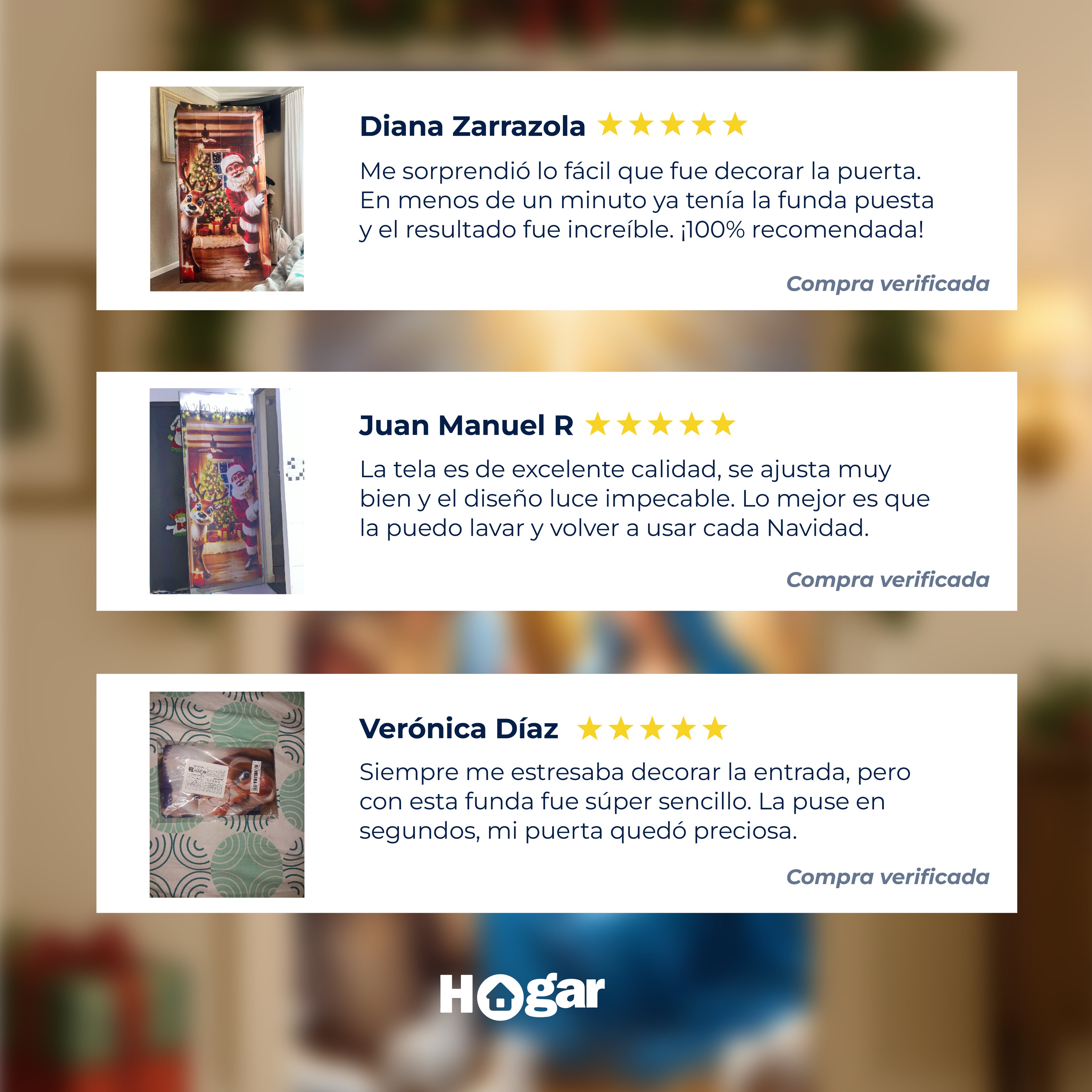 ¡La magia de la Navidad empieza en tu puerta! Decora al instante con nuestras Fundas Navideñas fáciles de poner y reutilizar.