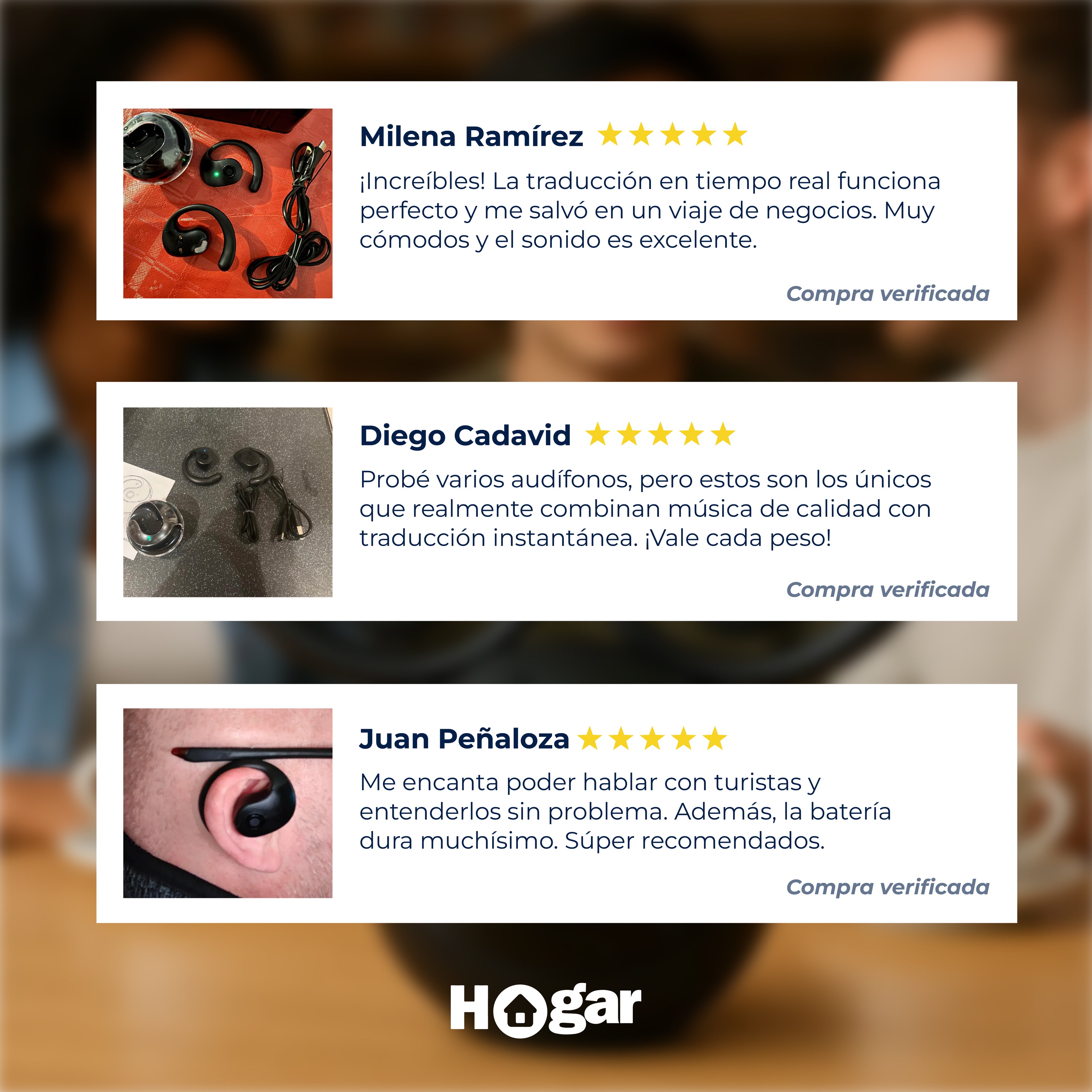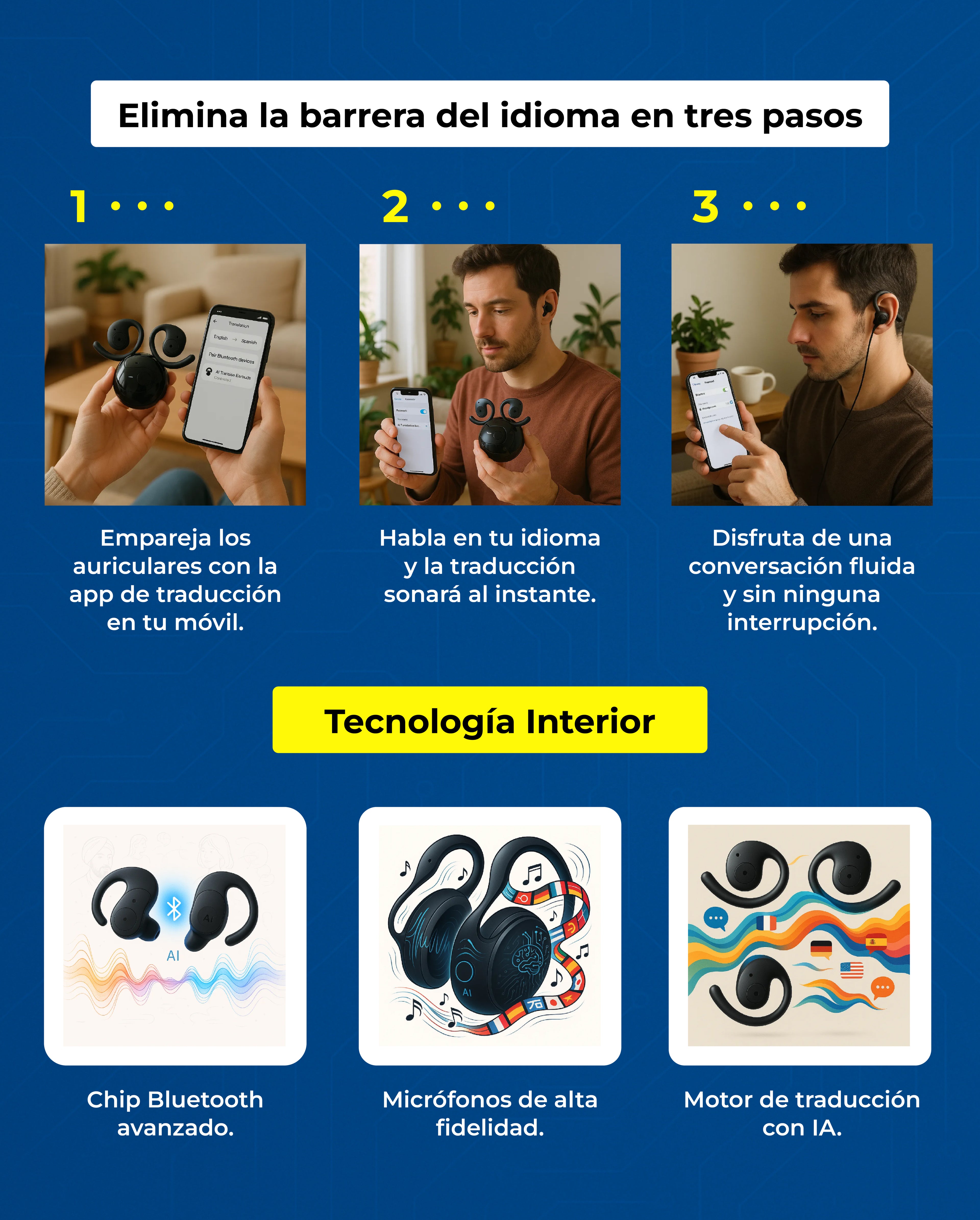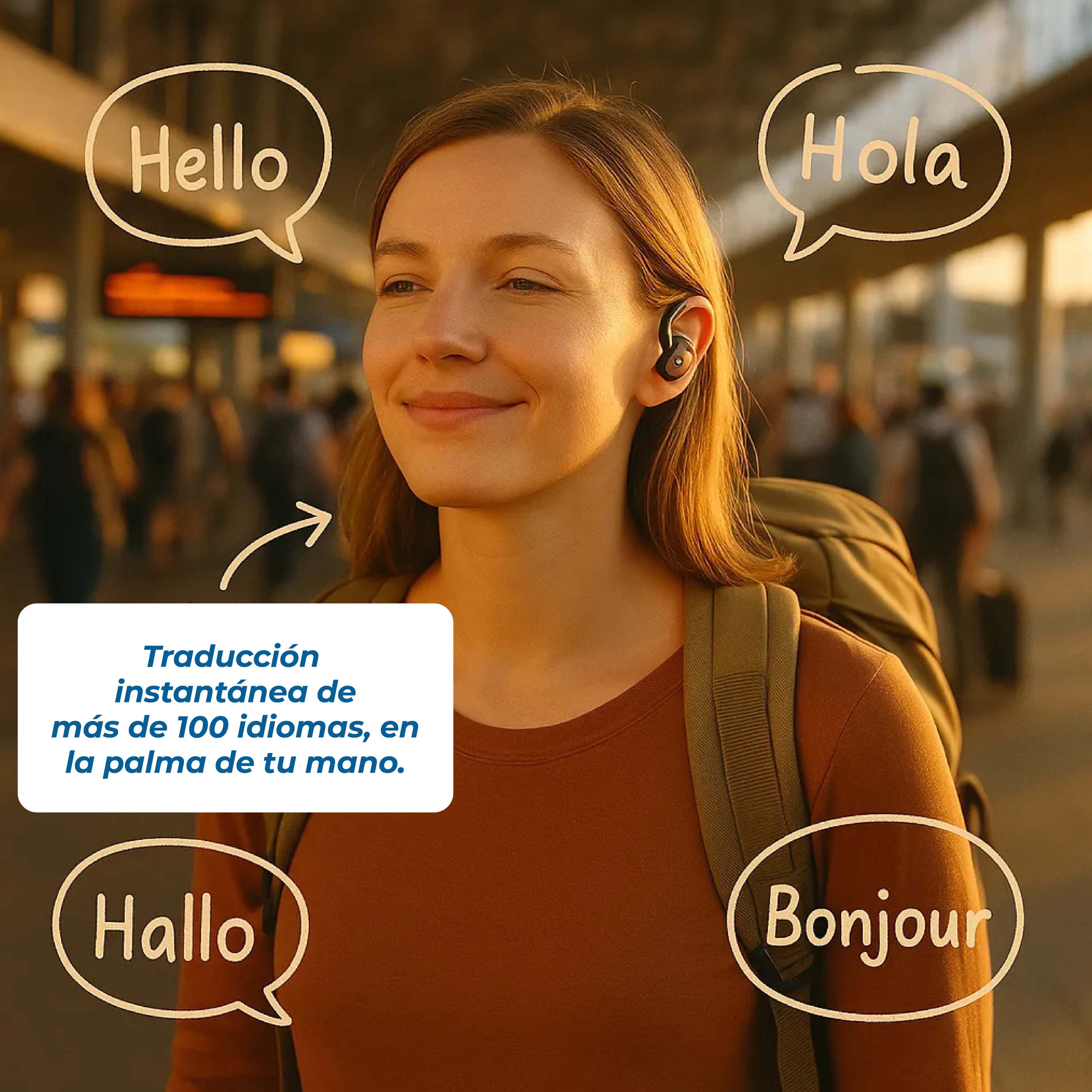 🌍 El mejor del mercado: música, llamadas y traducción instantánea en +100 idiomas, todo en un solo dispositivo🎧. Con batería duradera, conexión estable y una app gratuita de por vida, se convierten en la herramienta perfecta para viajar, trabajar o estudiar📱.