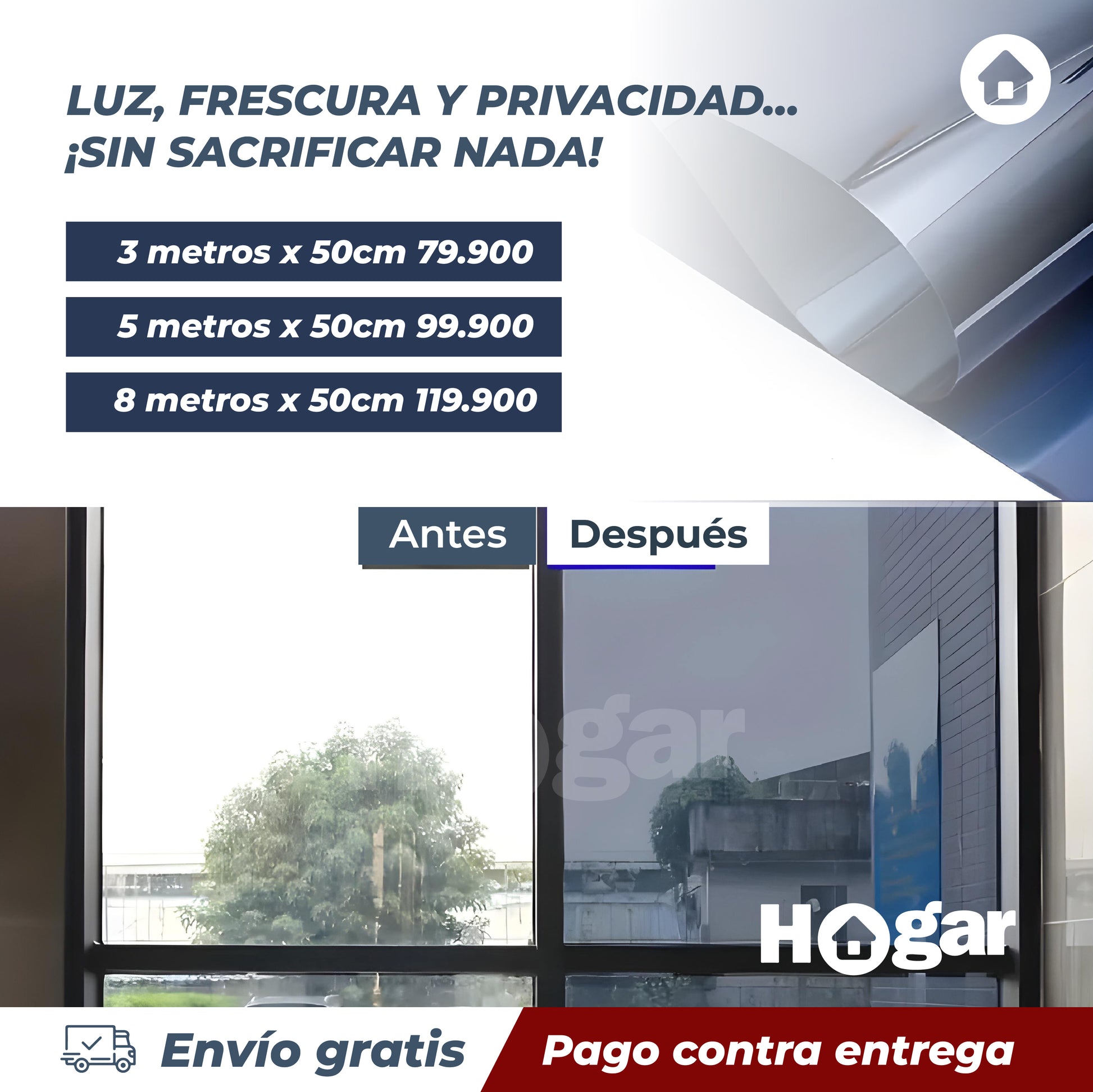 Tu casa merece luz, frescura y privacidad al mismo tiempo 🏡☀️🔒. Con nuestra película para ventanas, nadie te ve desde afuera, pero tú sí ves TODO 👀🪟. Instálala tú mismo en minutos… ¡sin herramientas ni complicaciones! 🧩🙌