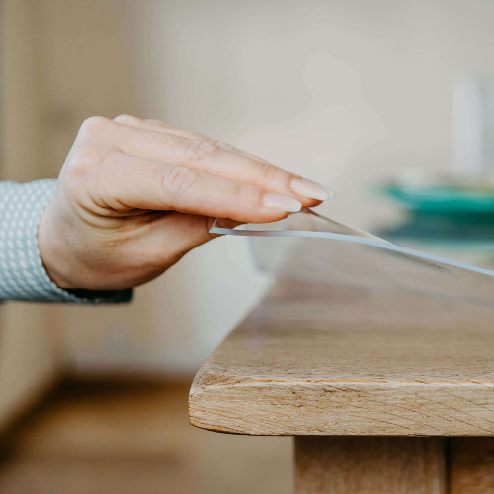 Nuestra lámina de PVC de 1 mm actúa como un escudo invisible contra manchas, rayones y derrames, manteniendo tu mesa impecable sin alterar su estilo ni comodidad.